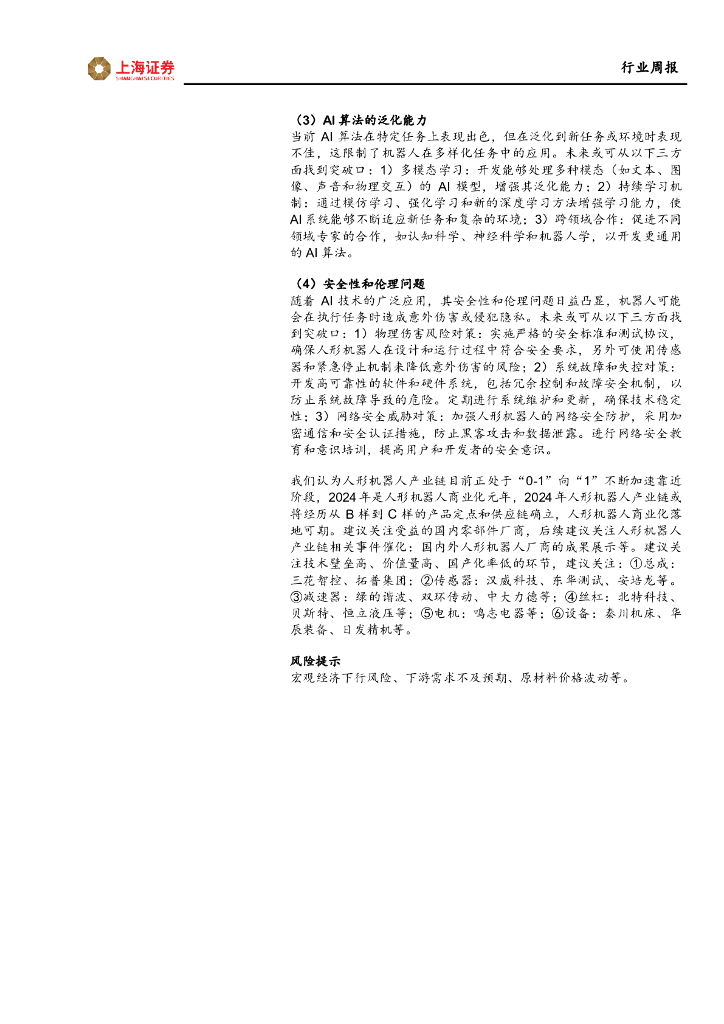 上海证券:机械行业周报:人形机器人实现AGI任重道远,持续关注人形机器人产业链进展.pdf