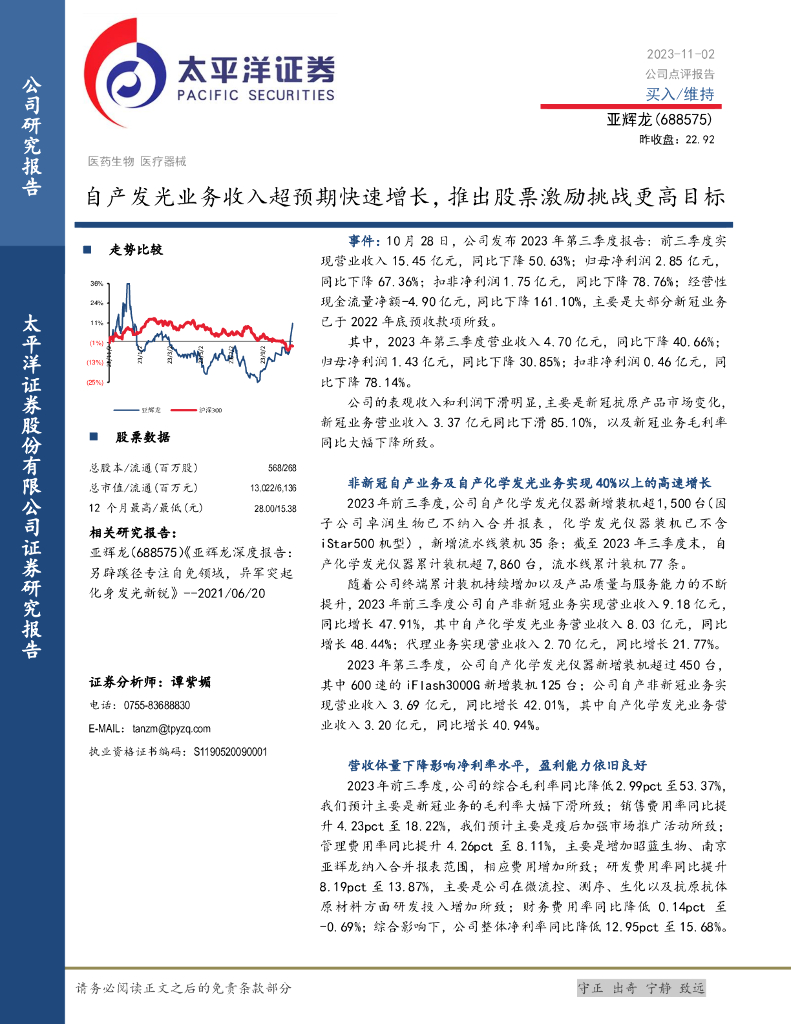 太平洋证券:亚辉龙(688575)-自产发光业务收入超预期快速增长,推出股票激励挑战更高目标.pdf