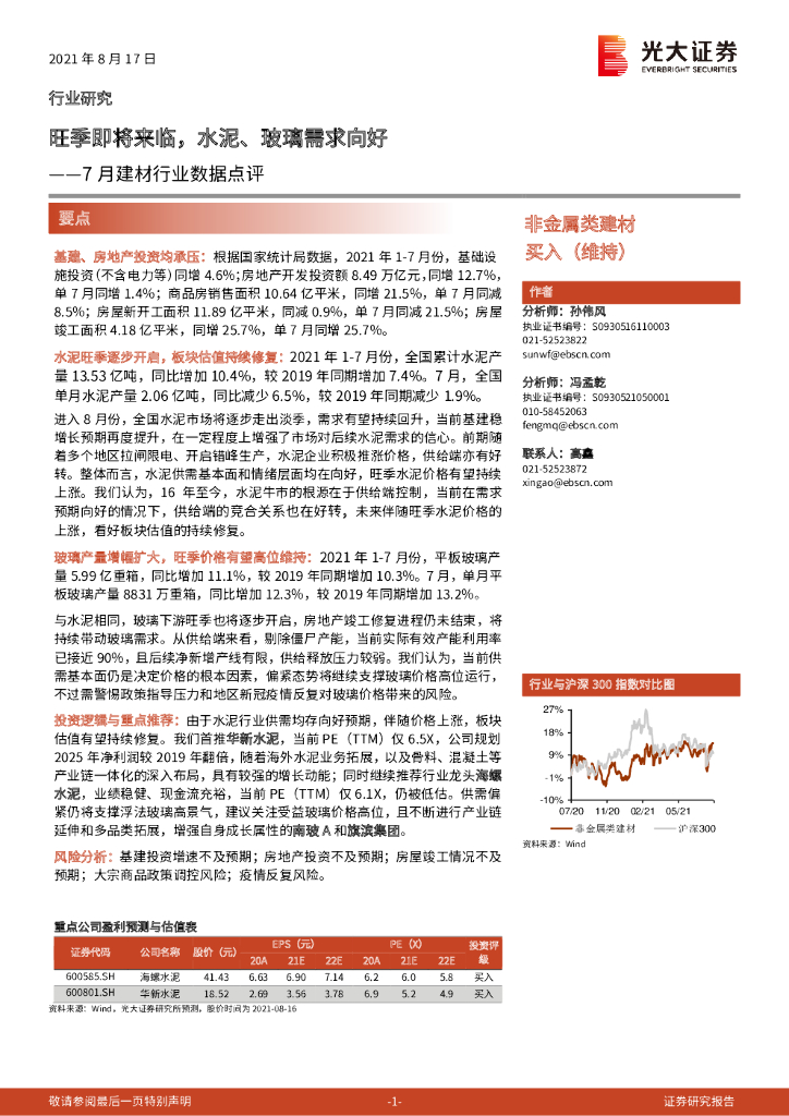 光大证券:7月建材行业数据点评:旺季即将来临,水泥、玻璃需求向好.pdf