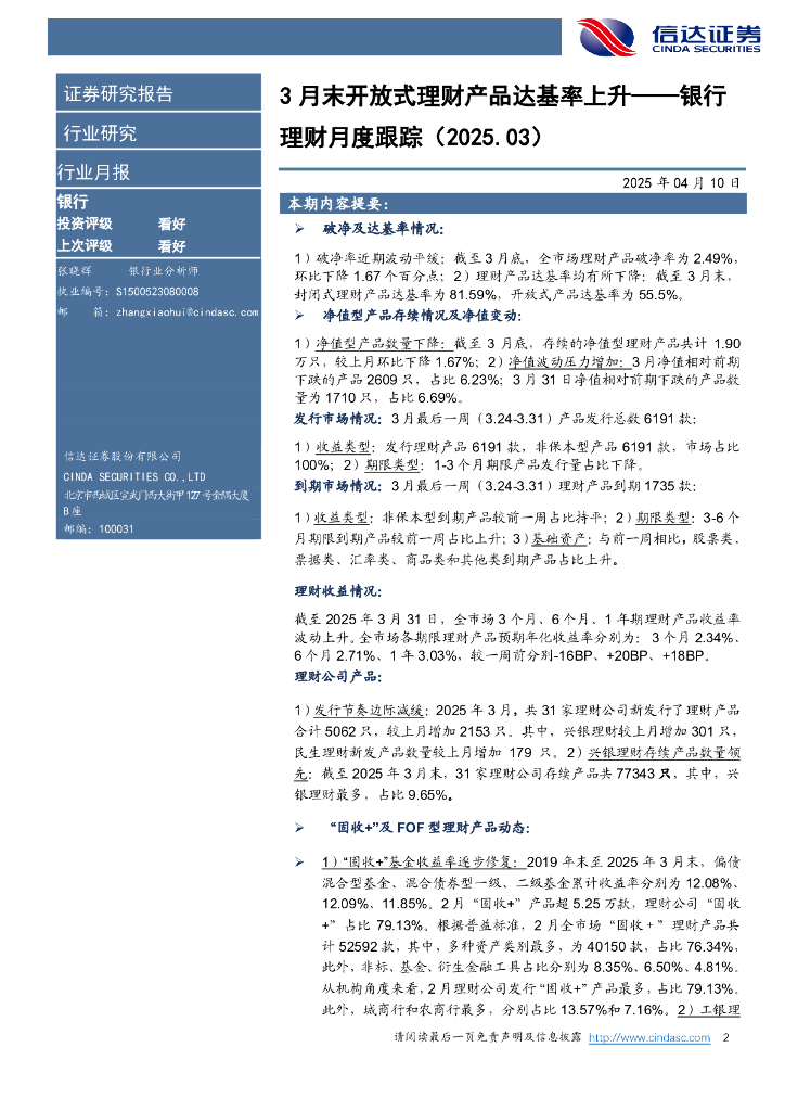 信达证券:银行理财月度跟踪(2025.03):3月末开放式理财产品达基率上升.pdf