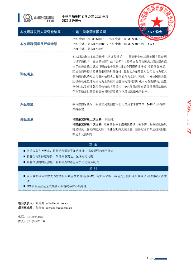 中诚信:中建三局集团有限公司2023年度跟踪评级报告.pdf