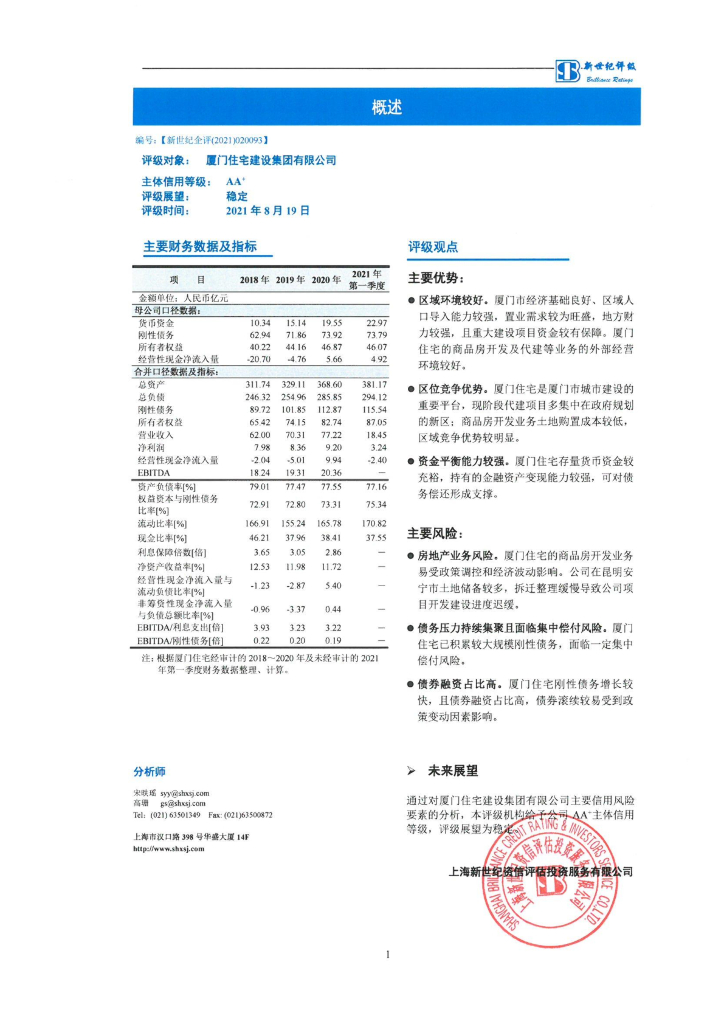 新世纪:厦门住宅建设集团有限公司2021年度主体信用评级报告.pdf