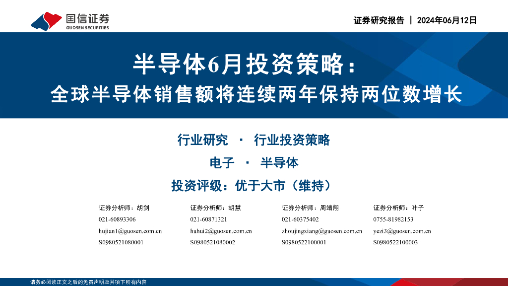 国信证券:半导体6月投资策略:全球半导体销售额将连续两年保持两位数增长.pdf