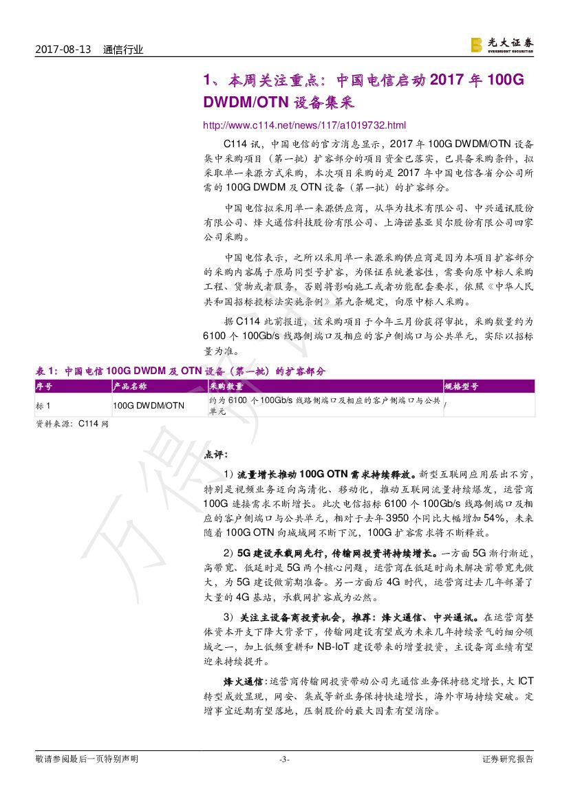 光大证券:通信行业周报:电信启动100G OTN设备集采,关注主设备商投资机会.pdf