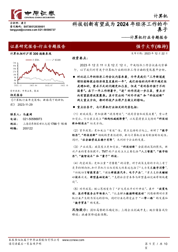 中原证券:计算机行业专题报告:科技创新有望成为2024年经济工作的牛鼻子.pdf