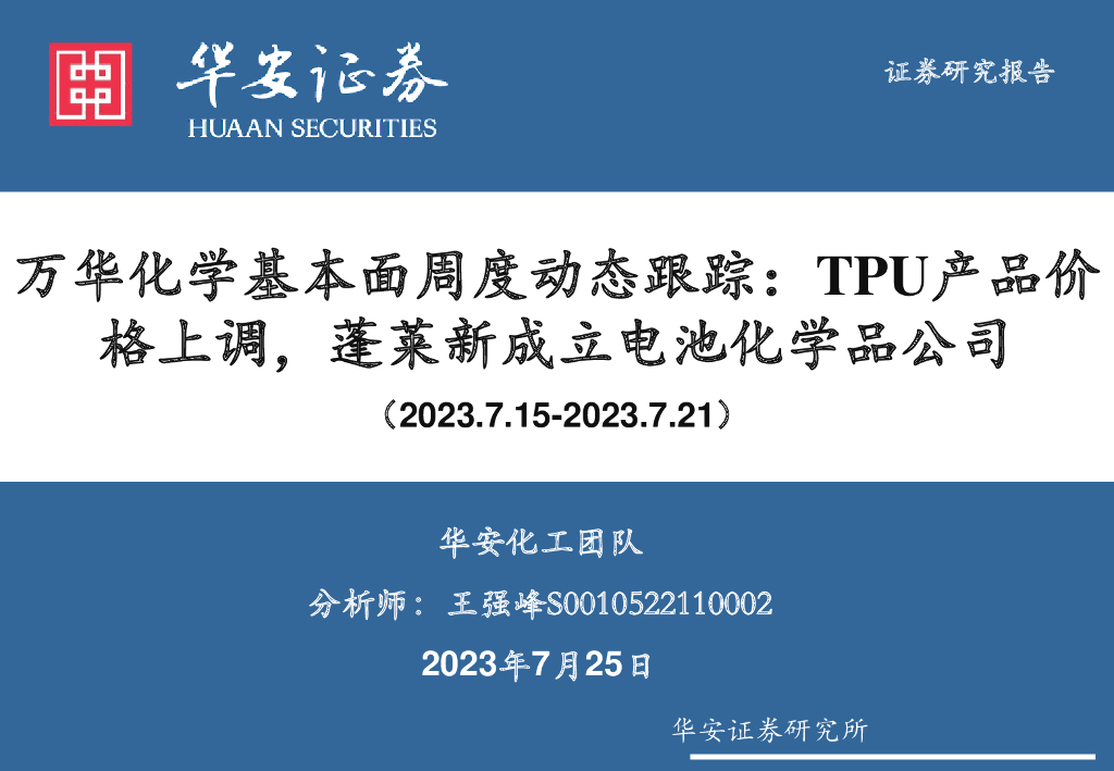 华安证券:万华化学基本面周度动态跟踪:TPU产品价格上调,蓬莱新成立电池化学品公司.pdf