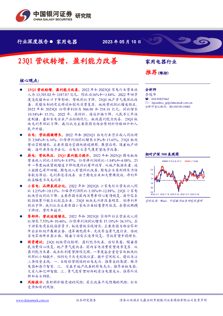 中国银河:家用电器行业深度报告:23Q1营收转增,盈利能力改善.pdf