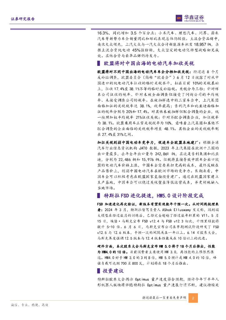 华鑫证券:汽车行业周报:特斯拉召开2024年股东大会,5月乘用车销量发布,欧盟将对中国出海电动车征收关税.pdf