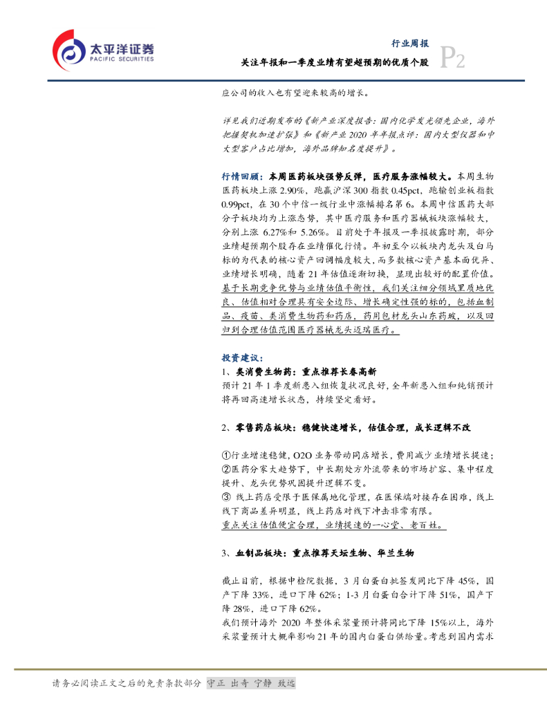 太平洋证券:医药周报—关注年报和一季度业绩有望超预期的优质个股.pdf