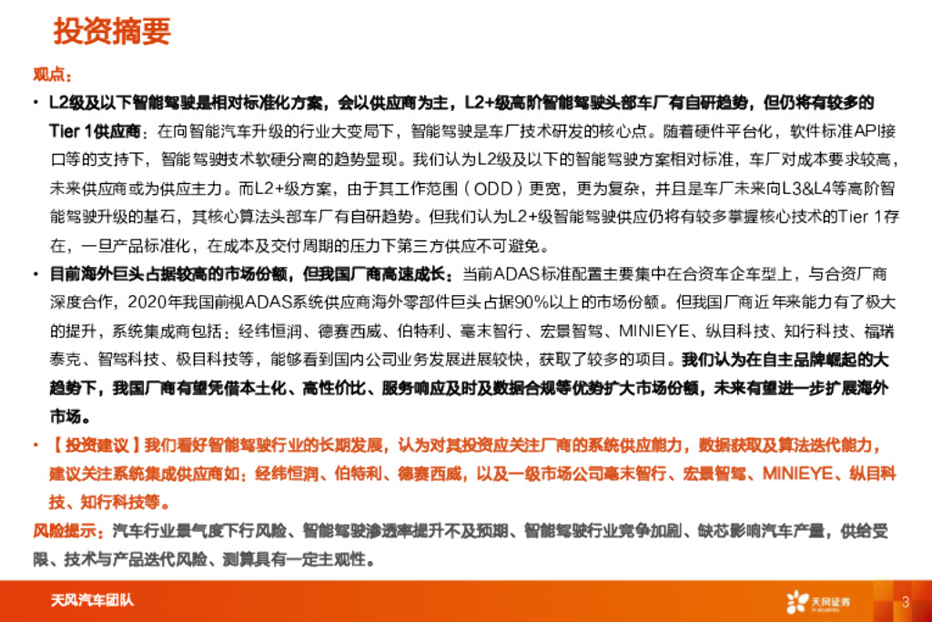 天风证券:汽车零部件:智能电动汽车赛道深度四:智能驾驶系统集成商,国产替代崛起.pdf