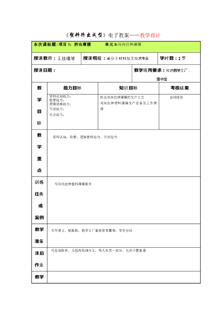 《塑料挤出成型》电子教案-项目3 挤出薄膜 单元8双向拉伸薄膜.pdf