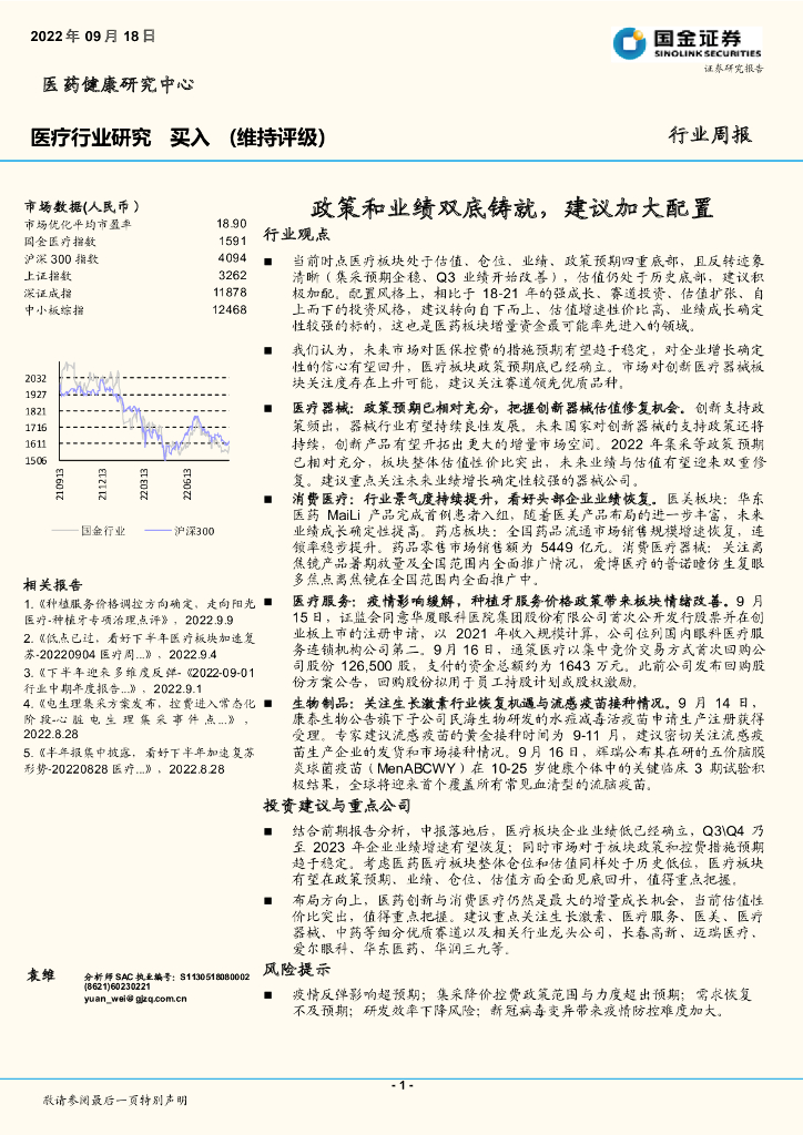 国金证券:医疗行业研究:政策和业绩双底铸就,建议加大配置.pdf