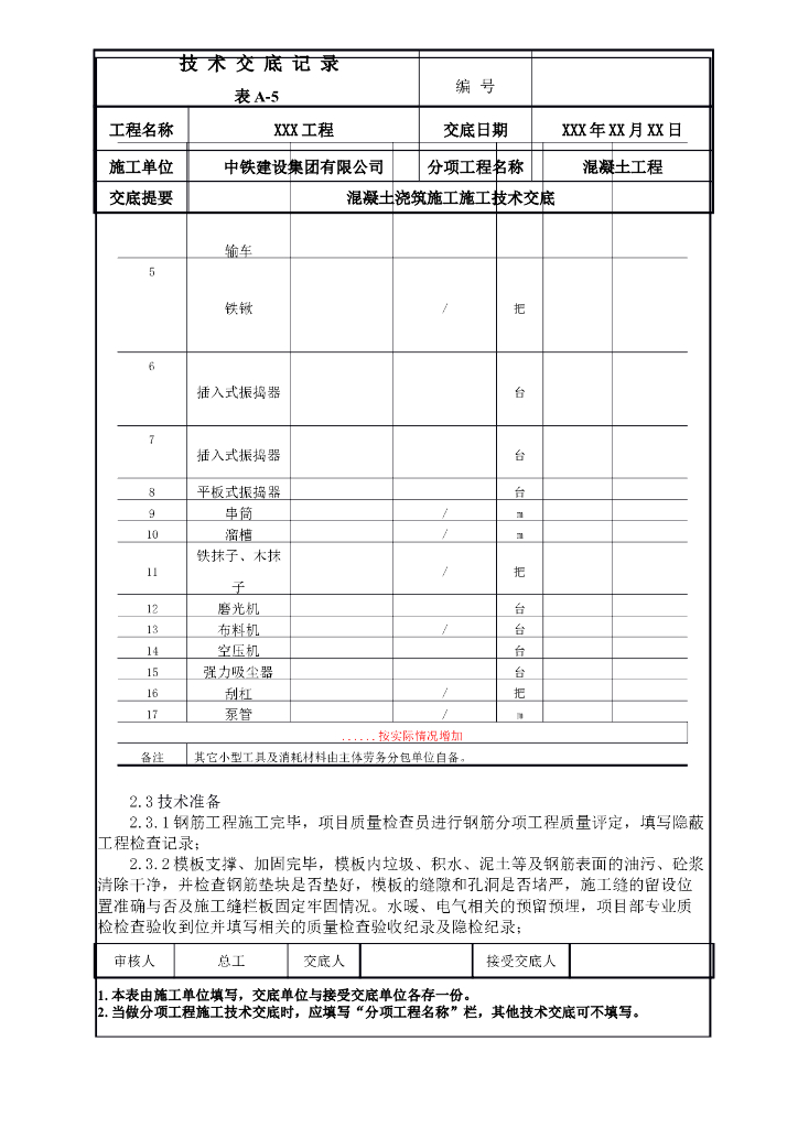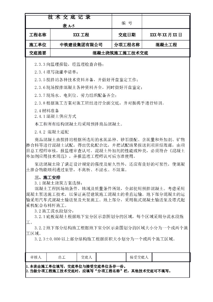 混凝土浇筑施工技术交底.doc