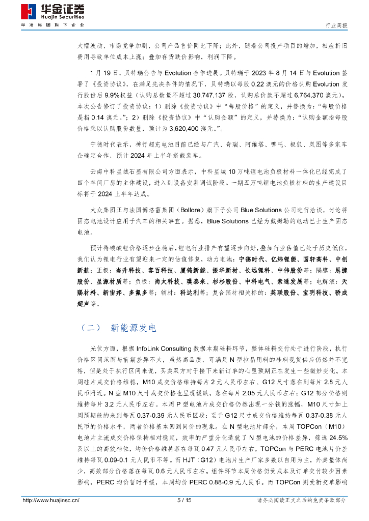 华金证券:电力设备及新能源行业周报:宁德神行超充电池将于2024年上半年装车,光伏主产业链价格企稳【第4期】.pdf