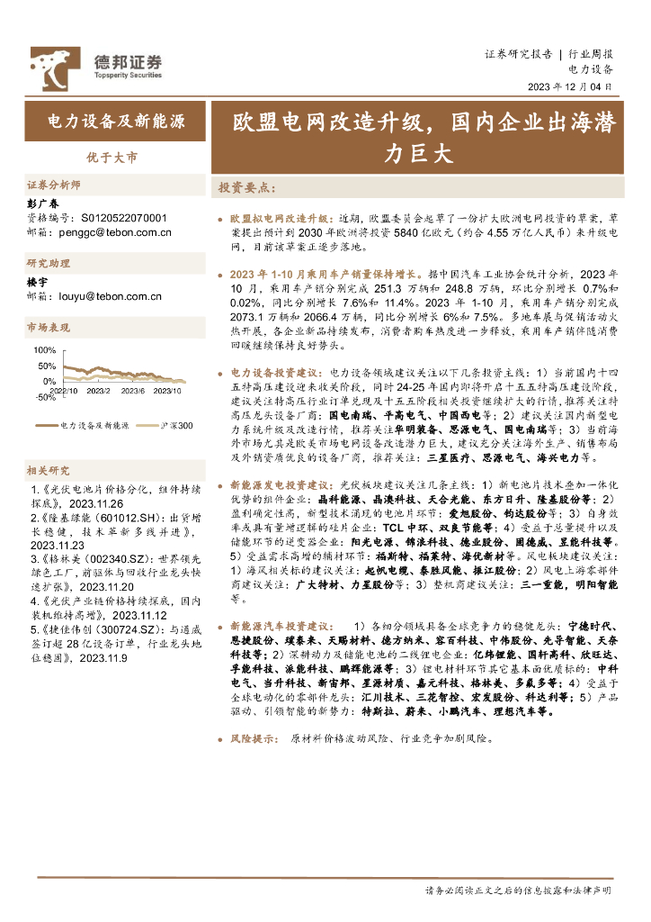 德邦证券:电力设备及新能源行业周报:欧盟电网改造升级,国内企业出海潜力巨大.pdf