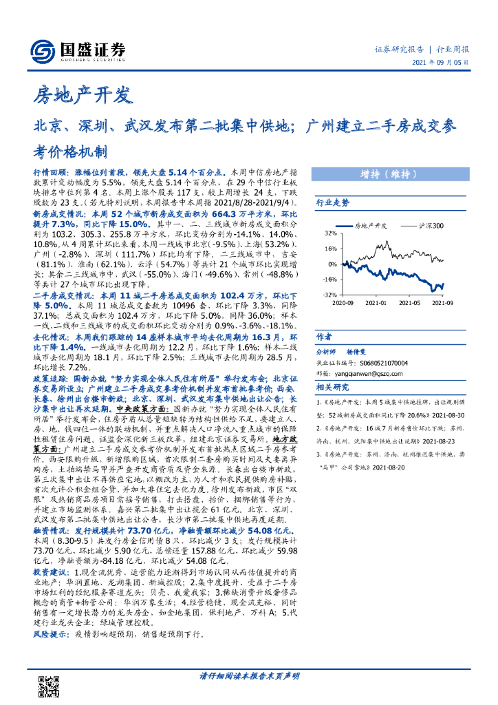 国盛证券:房地产开发行业周报:北京、深圳、武汉发布第二批集中供地;广州建立二手房成交参考价格机制.pdf