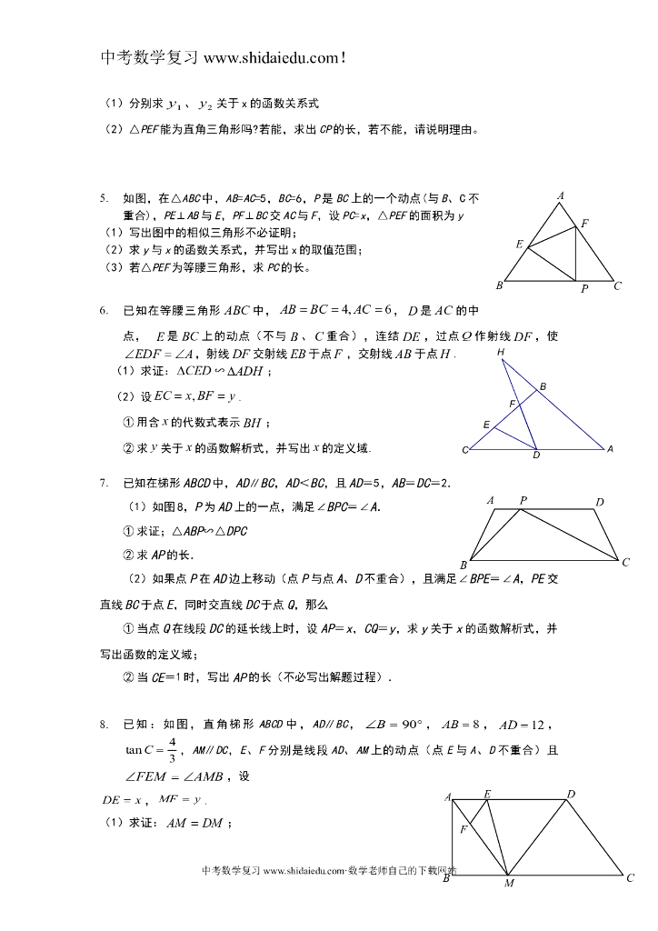 中考数学专题复习练习--三等角型相似三角形题型压轴题.doc