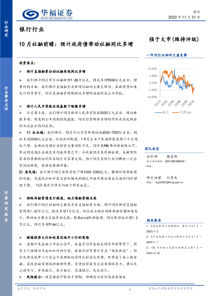 华福证券:银行行业:10月社融前瞻:预计政府债带动社融同比多增.pdf