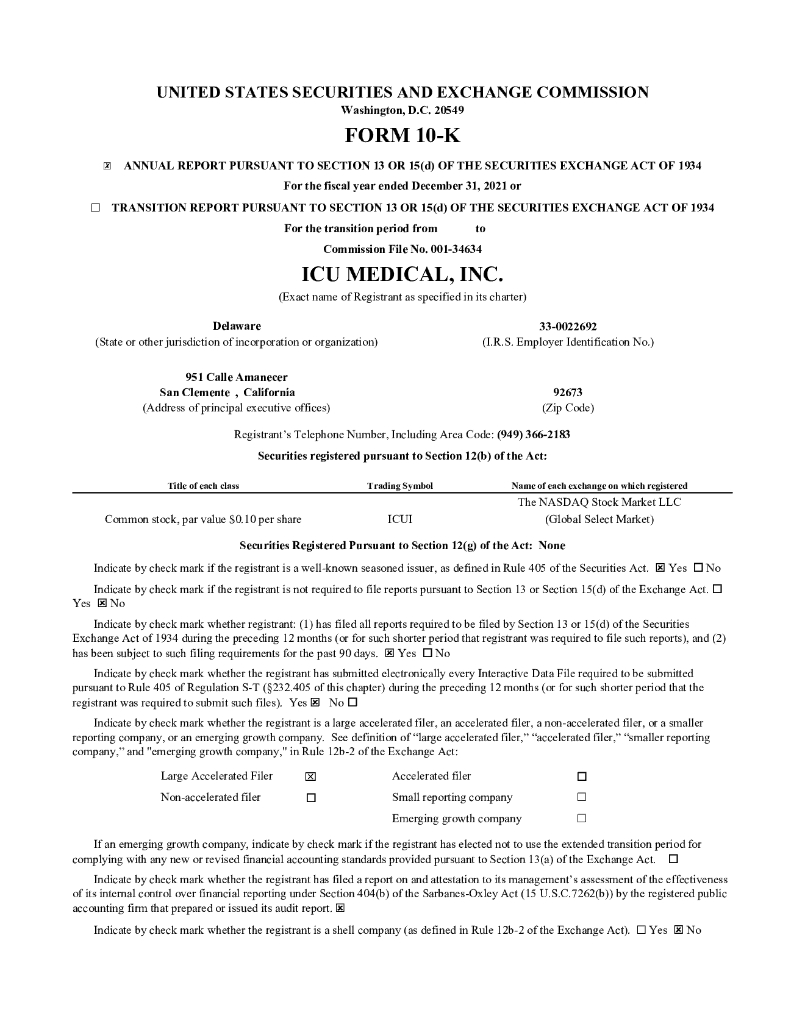 ICU Medical, Incorporated(ICUI)2021财年年度报告(英文版).pdf