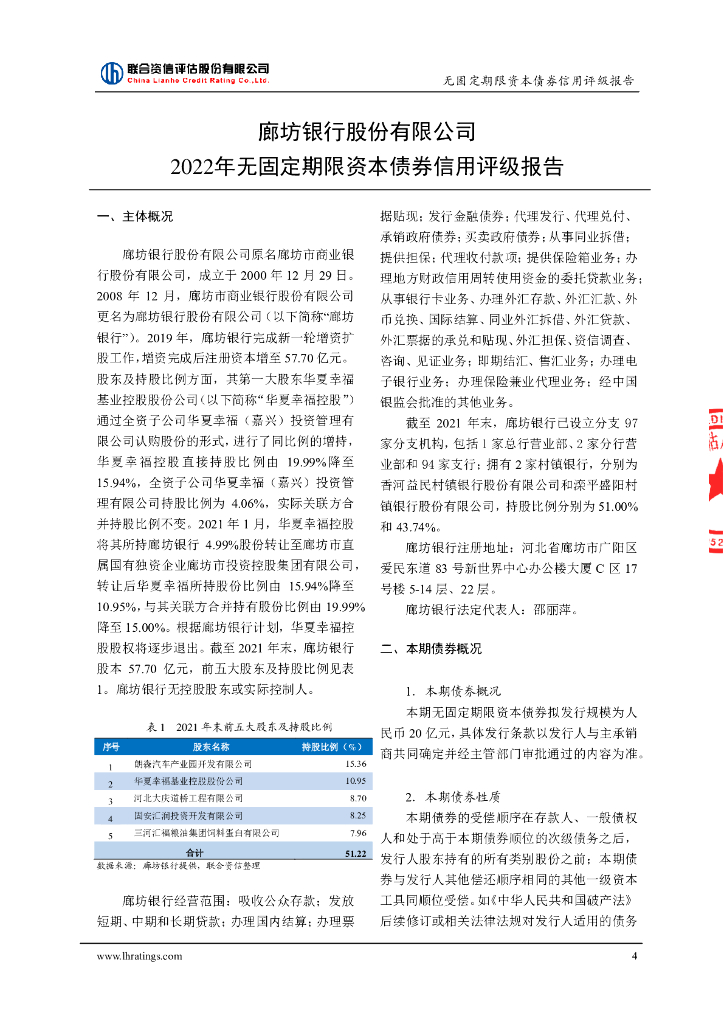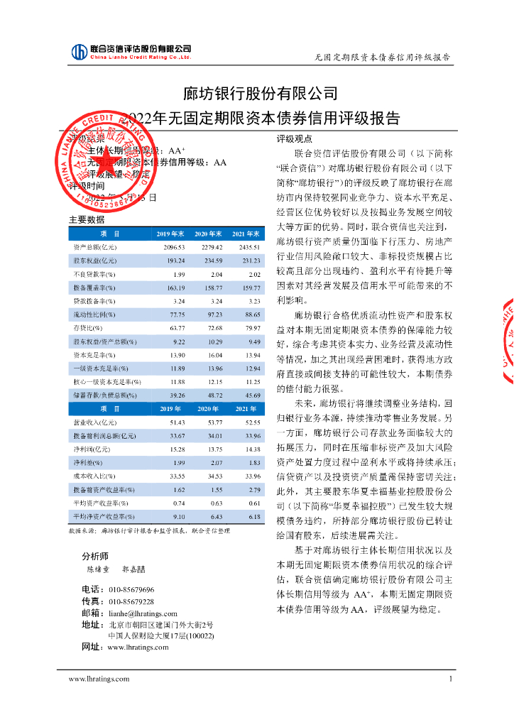 联合资信:廊坊银行股份有限公司2022年无固定期限资本债券信用评级报告及跟踪评级安排.pdf