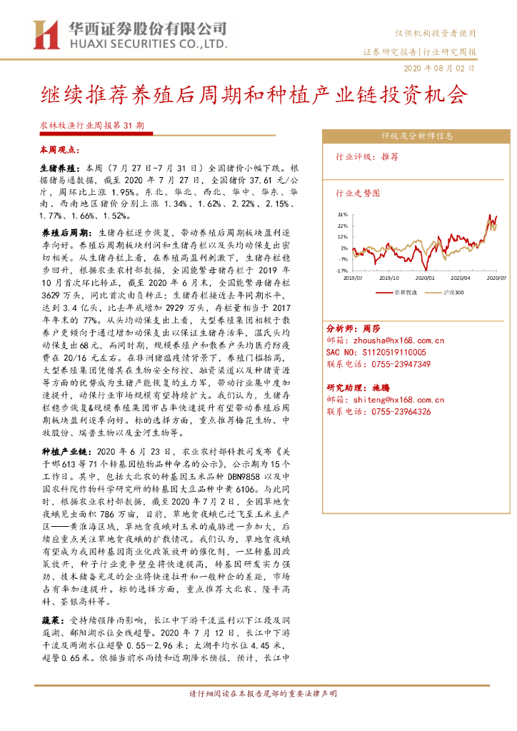 华西证券:农林牧渔行业周报第31期:继续推荐养殖后周期和种植产业链投资机会.pdf