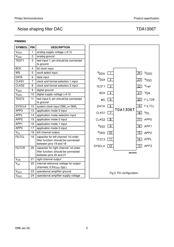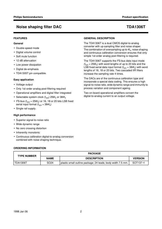 philips TDA1306T Noise shaping filter DAC 数据手册.pdf