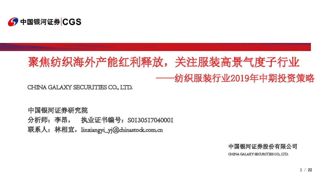 中国银河:纺织服装行业2019年中期投资策略:聚焦纺织海外产能红利释放,关注服装高景气度子行业.pdf