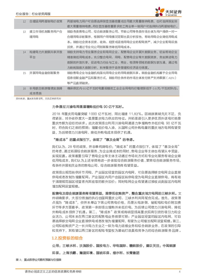 天风证券:公用事业行业研究周报:重庆提出16项措施降用电成本、引导综合能源服务,看好三峡水利.pdf