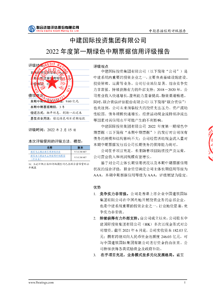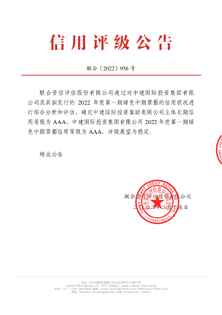 联合资信:中建国际投资集团有限公司2022年度第一期绿色中期票据信用评级报告.pdf