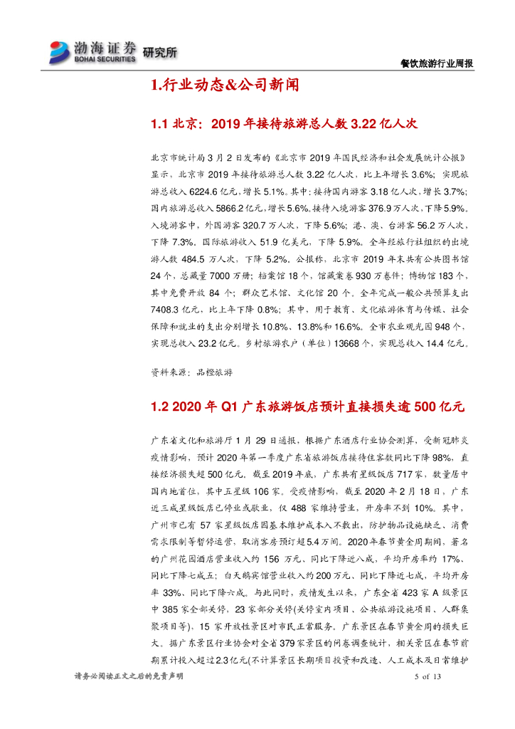 渤海证券:餐饮旅游行业周报:19年国内游人次同增8.4% 多国恢复开放签证申请.pdf