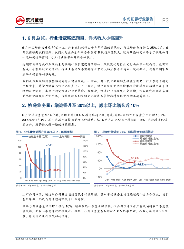 东兴证券:交通运输:快递6月数据点评:行业增速略超预期,顺丰件量环比提升明显.pdf