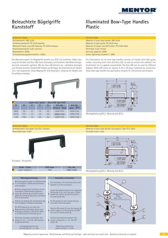 MENTOR Illuminated Bow-Type Handles Plastic 数据手册.pdf