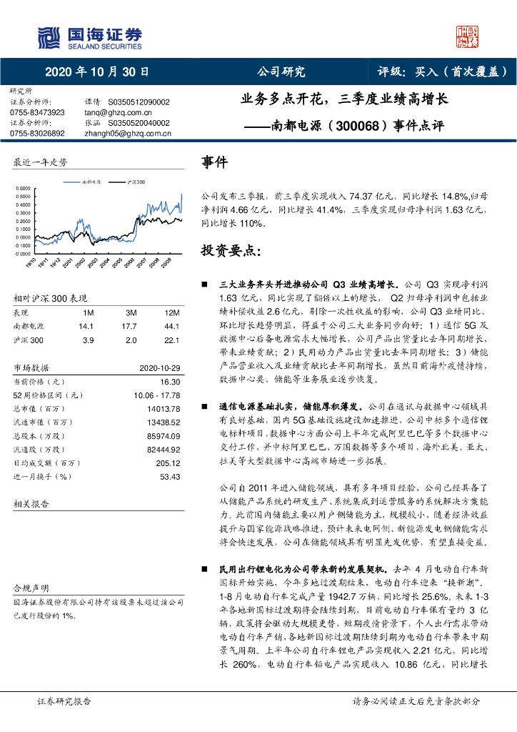 国海证券:南都电源(300068)-事件点评:业务多点开花,三季度业绩高增长.pdf