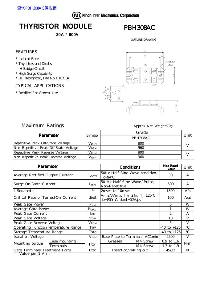 Nihon Inter Electronics PBH308AC 数据手册.pdf