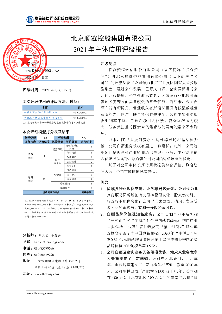联合资信:北京顺鑫控股集团有限公司主体信用评级报告及跟踪评级安排.pdf