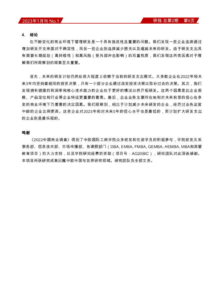 CEIBS:《中国商业调查》2023年1月刊:关于新商业环境下企业研发决策的分析.pdf