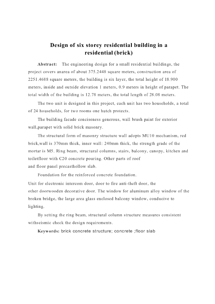六层砖混结构住宅楼毕业设计计算书(word,43页).pdf