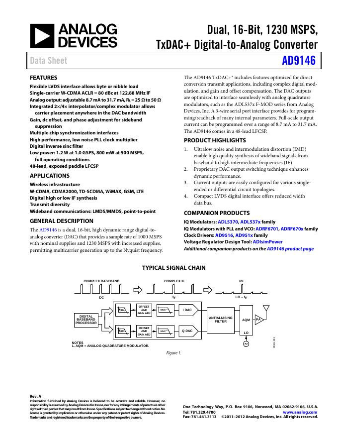 ANALOG DEVICES AD9146 英文产品数据手册.pdf