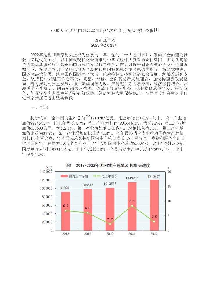 国家统计局:2022年国民经济和社会发展统计公报全文(附评读).pdf