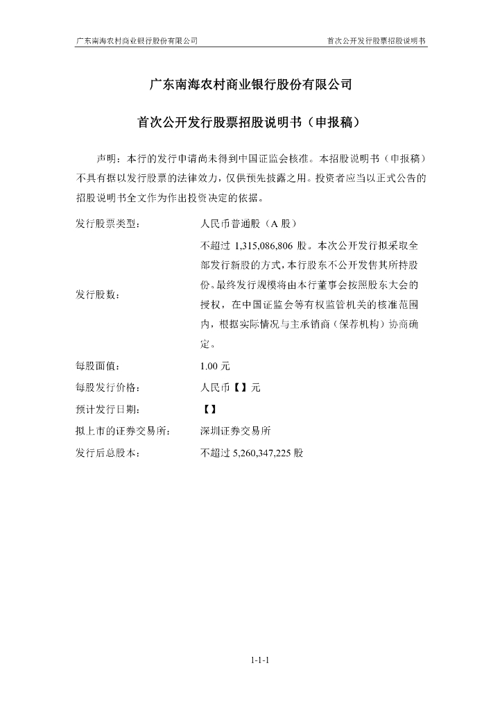 广东南海农村商业银行股份有限公司深交所主板IPO上市招股说明书.pdf
