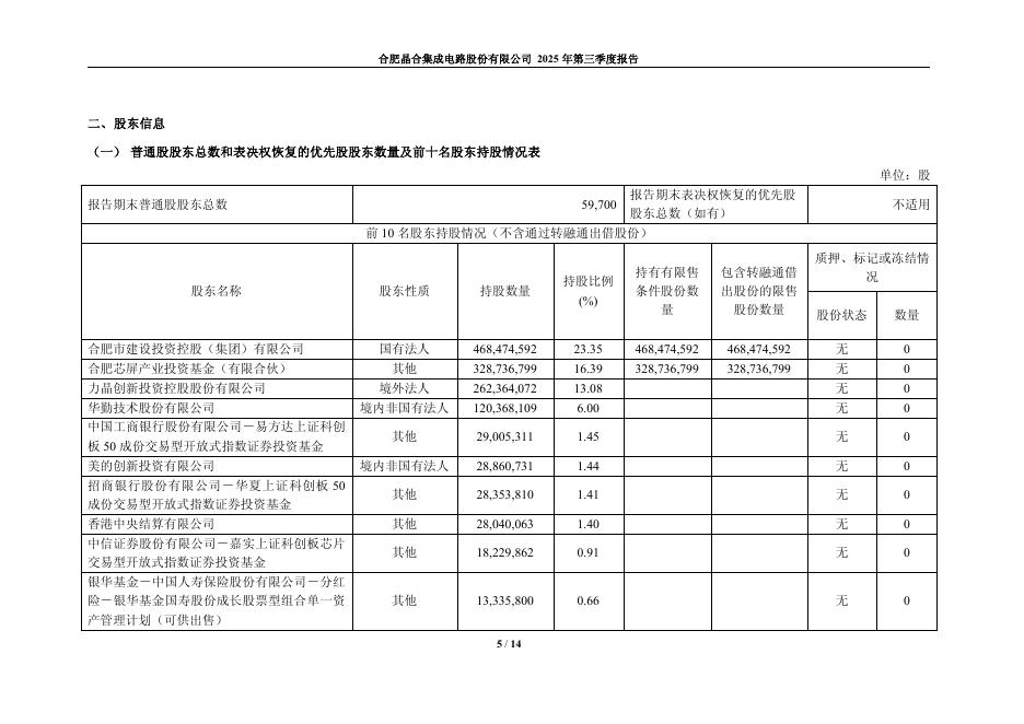 688249-晶合集成:晶合集成2025年第三季度报告.pdf