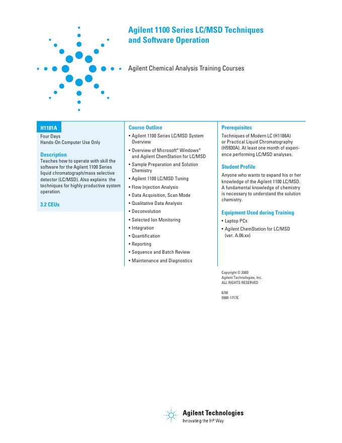 Agilent 1100 Series LC/MSD Techniques and Software Operation (H1181A) 数据手册.pdf