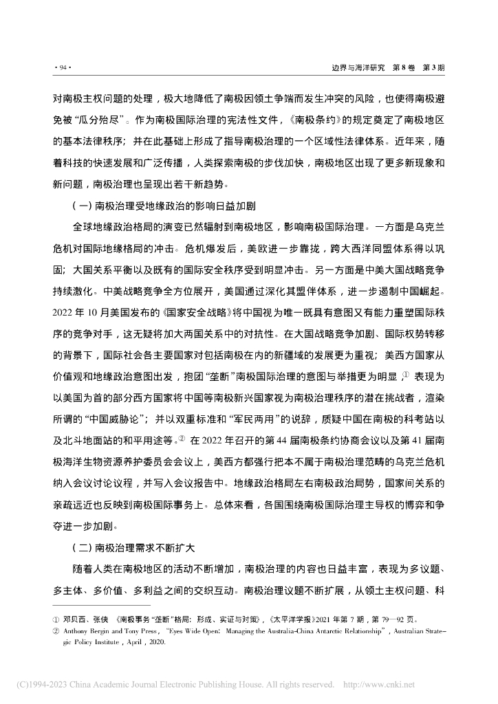边界与海洋研究:探索共建南极命运共同体:南极国际治理的发展趋势与推进路径-2023年第8卷第3期.pdf