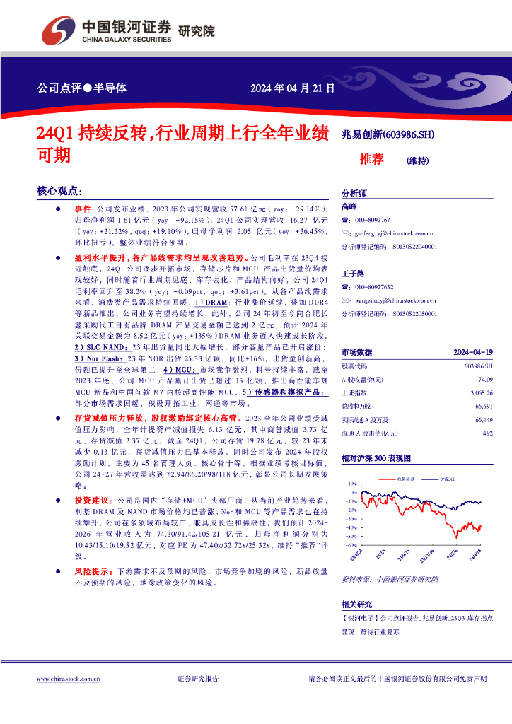 中国银河:兆易创新(603986)-24Q1持续反转,行业周期上行全年业绩可期.pdf