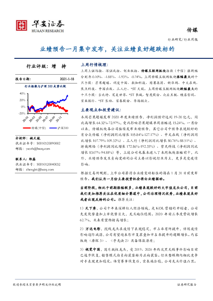 华安证券:传媒行业周报:业绩预告一月集中发布,关注业绩良好超跌标的.pdf