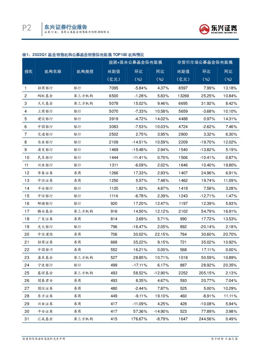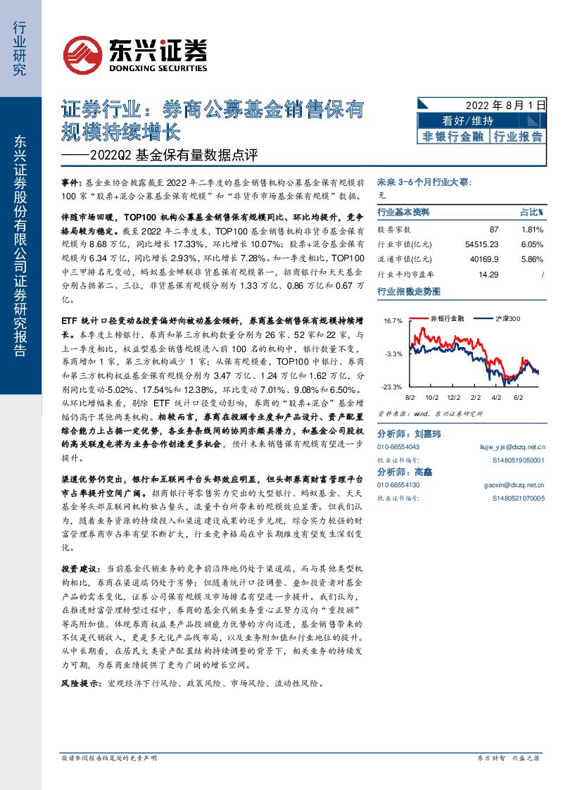 东兴证券:证券行业2022Q2基金保有量数据点评:券商公募基金销售保有规模持续增长.pdf