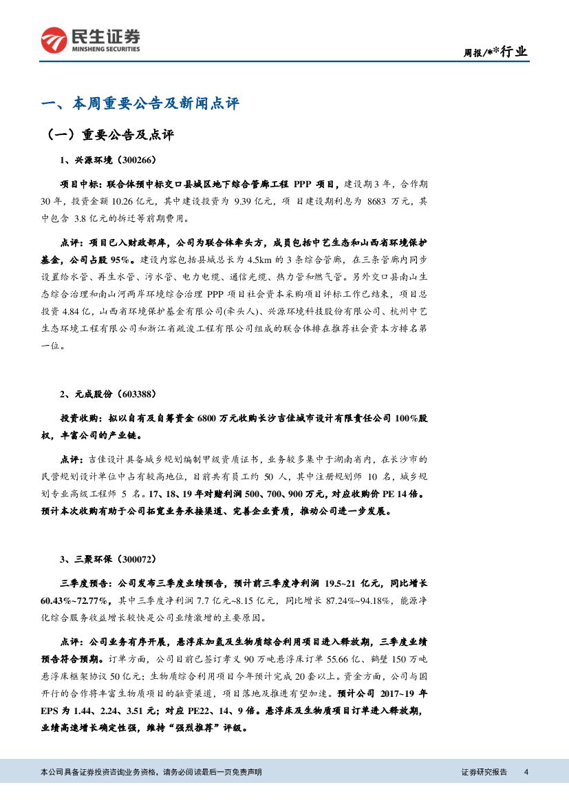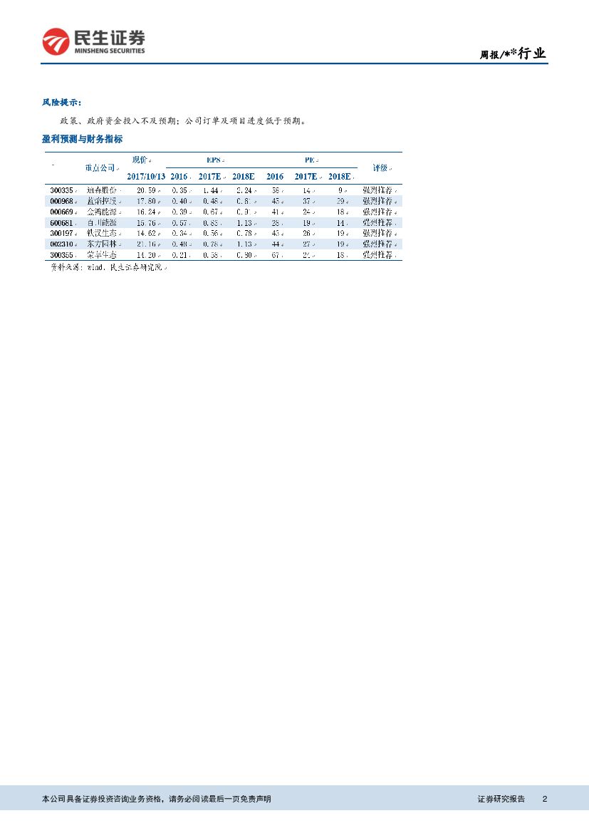 民生证券:环保行业周报:全面建成小康社会决胜阶段,十九大生态环保预计成为重要议题.pdf