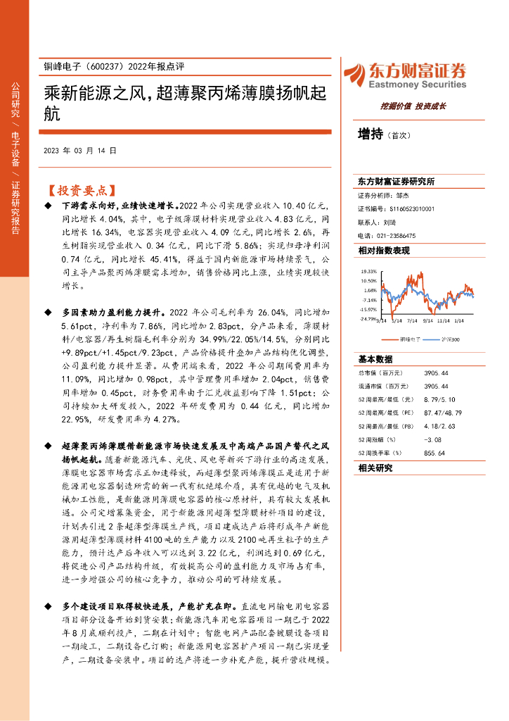 东方财富证券:铜峰电子(600237)-2022年报点评:乘新能源之风,超薄聚丙烯薄膜扬帆起航.pdf