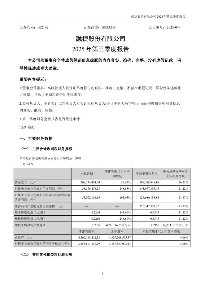 002192-融捷股份:2025年三季度报告.pdf