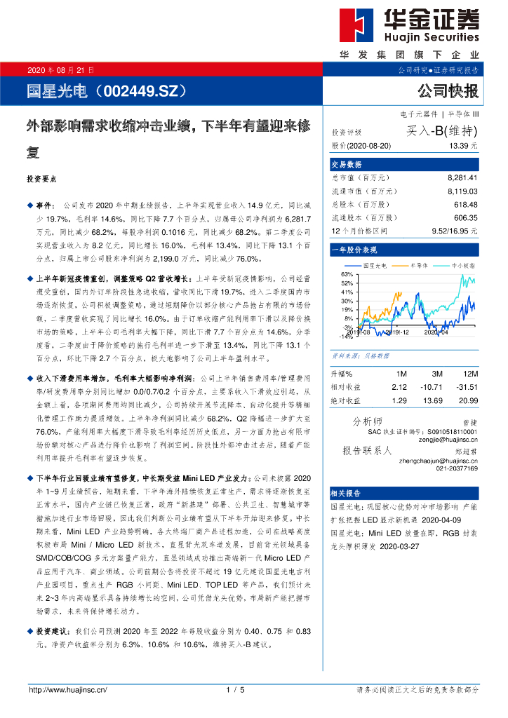 华金证券:国星光电(002449)-外部影响需求收缩冲击业绩,下半年有望迎来修复.pdf